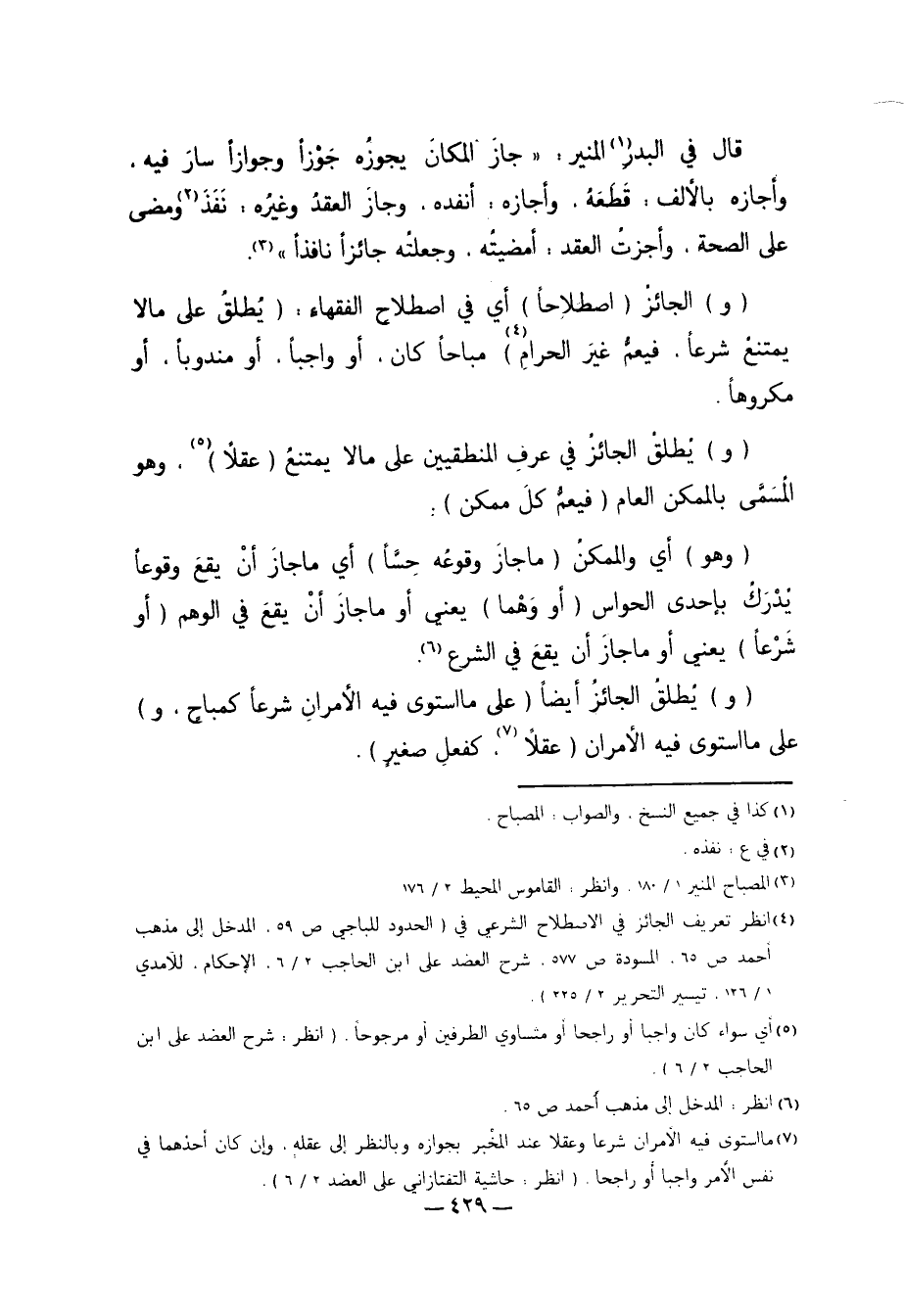 4 انظر تعريف الجائز في الاصطلاح الشرعي في "الحدود للباجي ص59، المدخل إلى مذهب أحمد ص65، المسودة ص577، شرح العضد على ابن الحاجب 2/ 6، الإحكام، للآمدي 1/ 126، تيسير التحرير 2/ 225".