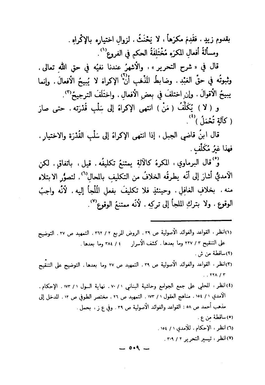 وَمَسْأَلَةُ أَفْعَالِ الْمُكْرَهِ مُخْتَلِفَةُ الْحُكْمِ فِي الْفُرُوعِ1.