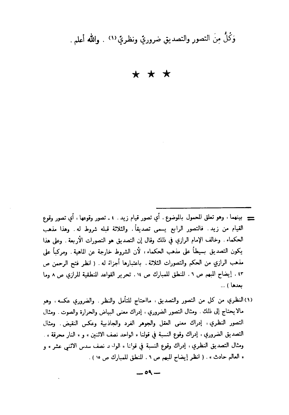 وَكُلٌّ مِنْ التَّصَوُّرِ وَالتَّصْدِيقِ ضَرُورِيٌّ وَنَظَرِيٌّ1. وَاَللَّهُ أَعْلَمُ.