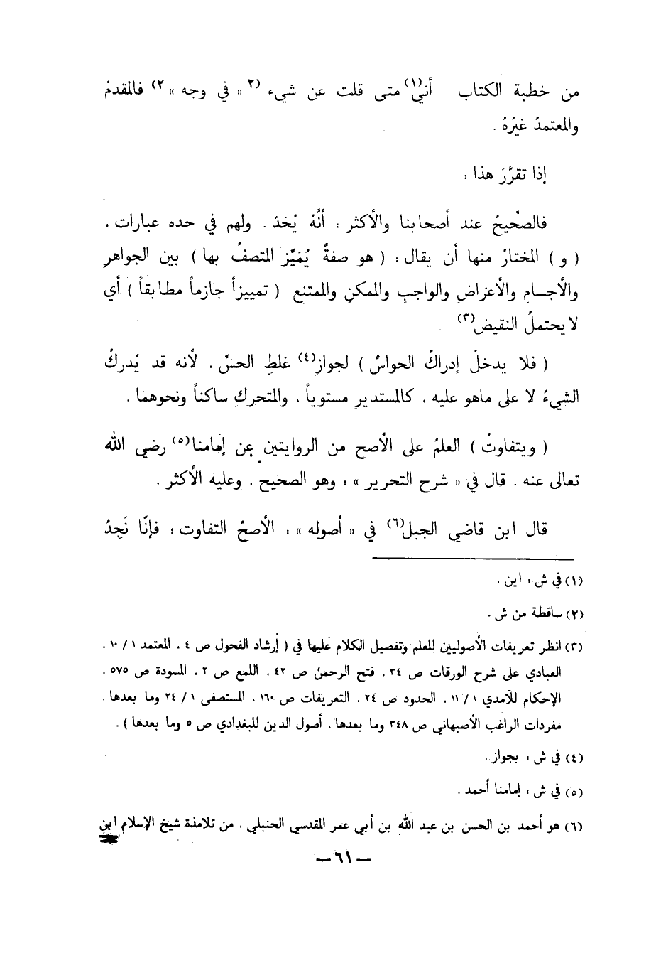 3 انظر تعريفات الأصوليين للعلم وتفصيل الكلام عليها في "إرشاد الفحول ص4، المعتمد 1/ 10، العبادي على شرح الورقات ص34، فتح الرحمن ص42، للمع ص2، المسودة ص575، الإحكام للآمدي 1/ 11، الحدود ص24، التعريفات ص160، المستصفى 1/ 24 وما بعدها. مفردات الراغب الأصبهاني ص348 وما بعدها، أصول الدين للبغدادي ص5 وما بعدها".