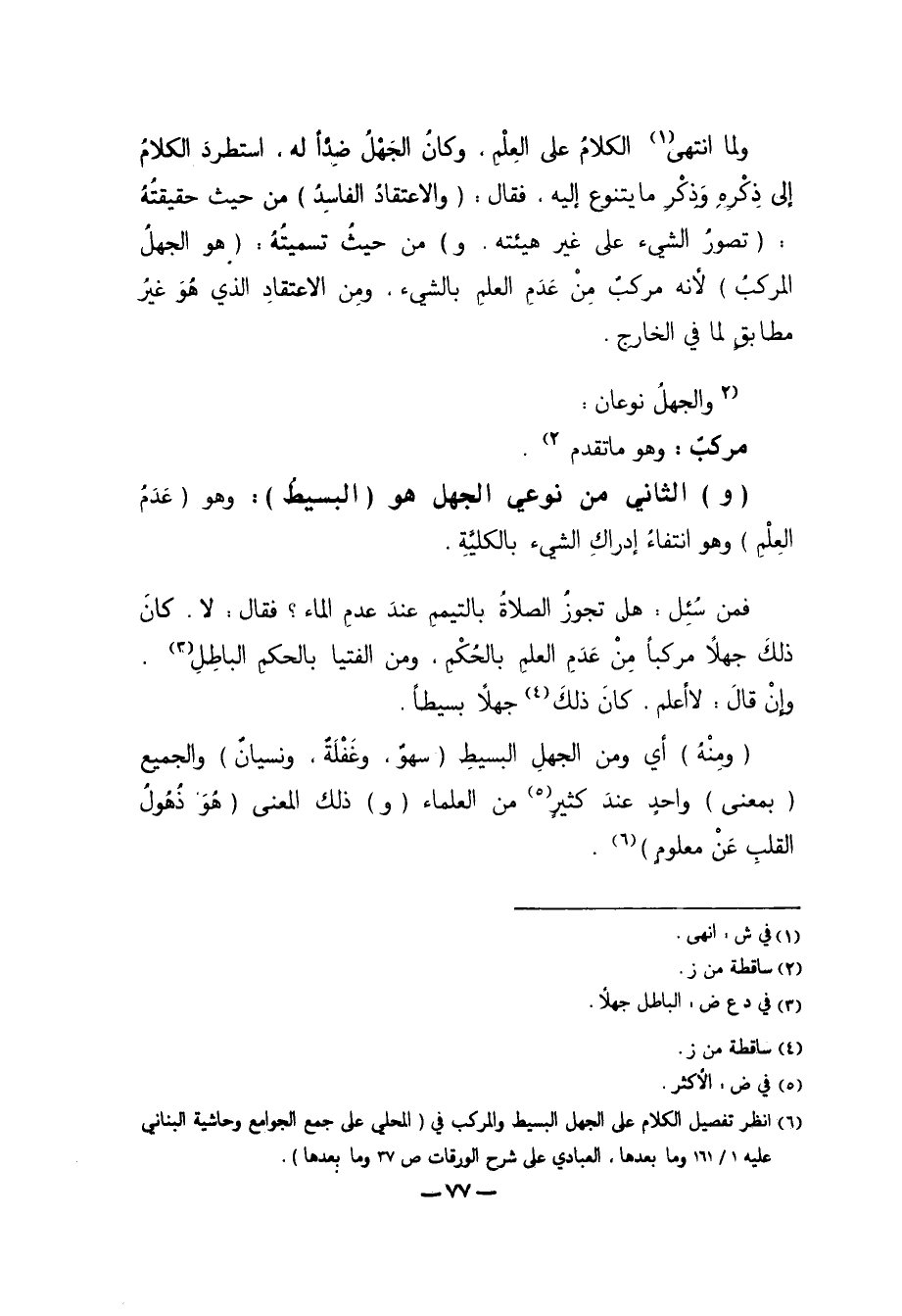 6 انظر تفصيل الكلام على الجهل البسيط والمركب في "المحلي على جمع الجوامع وحاشية البناني عليه 1/ 161 وما بعدها، العبادي على شرح الورقات ص37 وما بعدها".