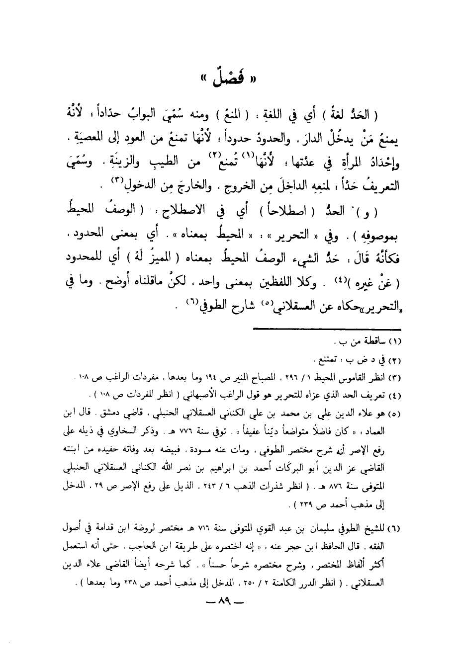 4 تعريف الحد الذي عزاه للتحرير هو قول الراغب الأصبهاني "انظر المفردات ص108".