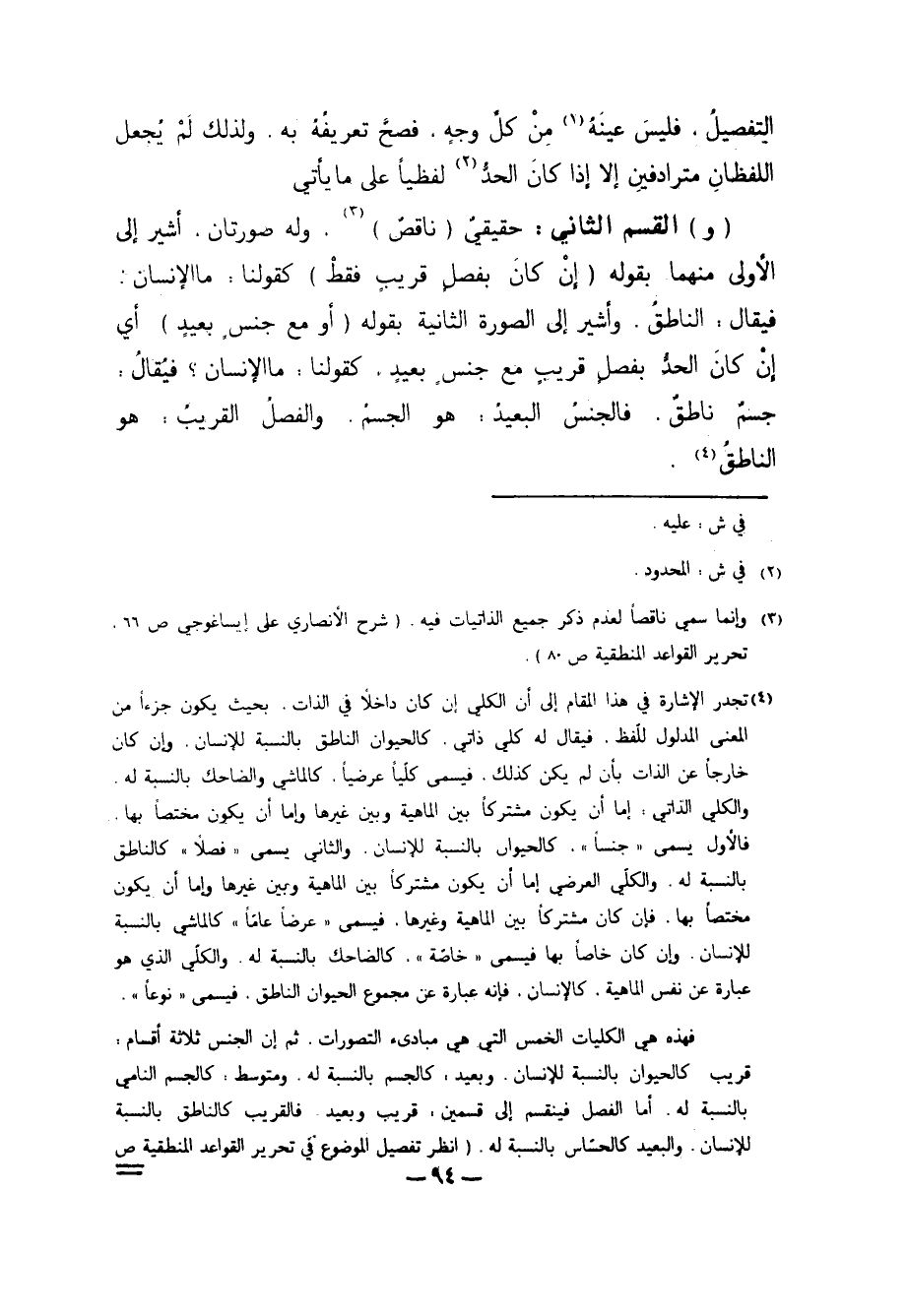 3 وإنما سمي ناقصاً لعدم ذكر جميع الذاتيات فيه. "شرح الأنصاري على إيساغوجي ص66، تحرير القواعد المنطقية ص80".