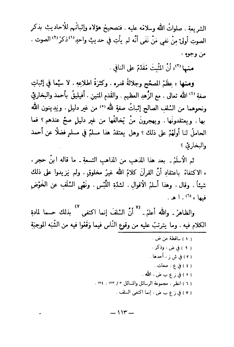 وَالظَّاهِرُ - وَاَللَّهُ أَعْلَمُ - 7أَنَّ السَّلَفَ إنَّمَا اكْتَفَى8 بِذَلِكَ حَسْمًا لِمَادَّةِ الْكَلامِ فِيهِ، وَمَا يَتَرَتَّبُ عَلَيْهِ مِنْ وُقُوعِ النَّاسِ فِيمَا وَقَعُوا فِيهِ مِنْ الشُّبَهِ الْمُوجِبَةِ