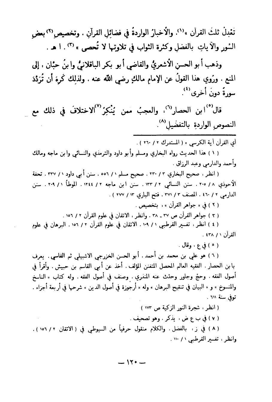 تَعْدِلُ ثُلُثَ الْقُرْآنِ" 1. وَالأَخْبَارُ الْوَارِدَةُ فِي فَضَائِلِ الْقُرْآنِ، وَتَخْصِيصِ2 بَعْضِ السُّوَرِ وَالآيَاتِ بِالْفَضْلِ، وَكَثْرَةِ الثَّوَابِ فِي تِلاوَتِهَا لا تُحْصَى3". اهـ.