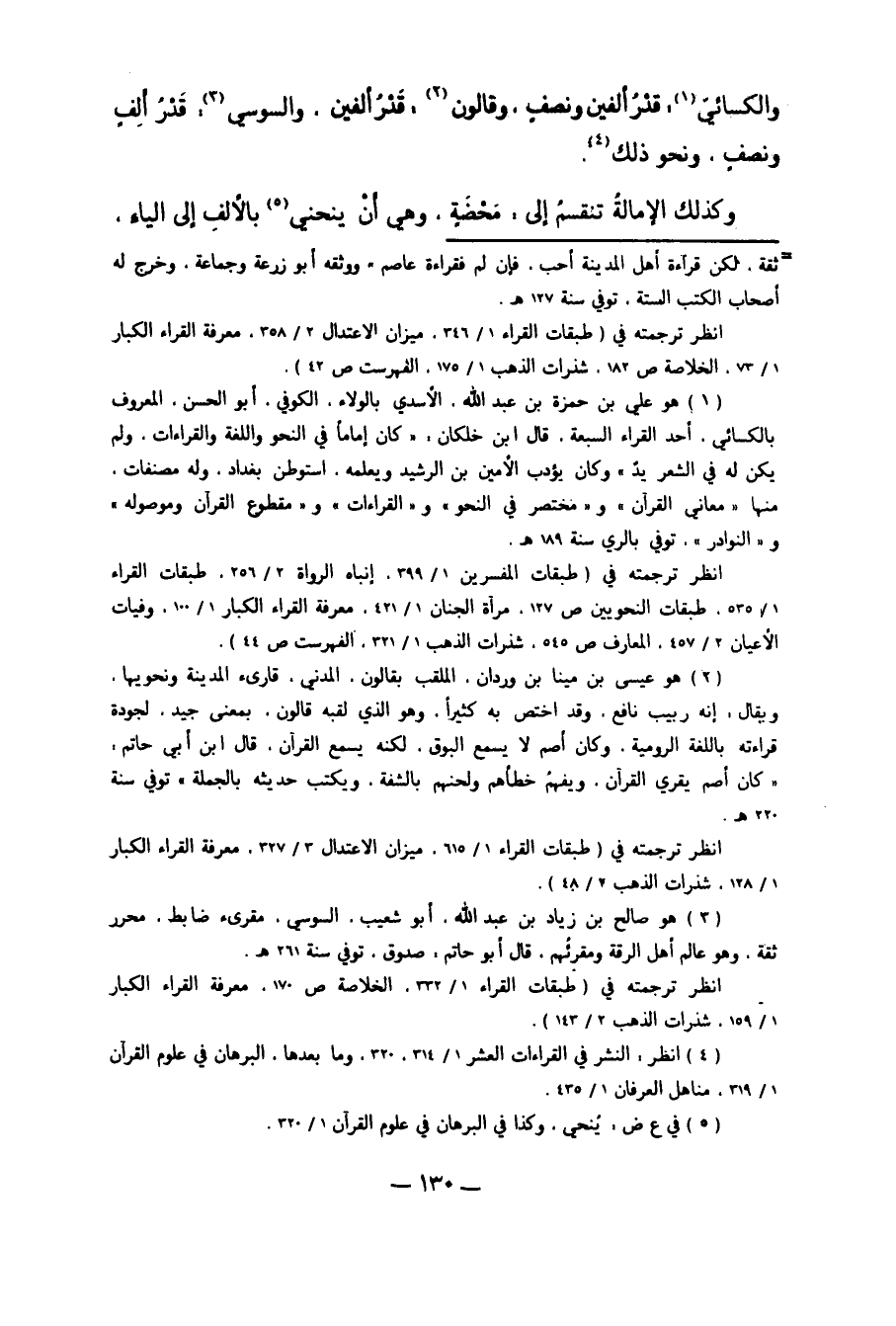 1 هو علي بن حمزة بن عبد الله الأسدي بالولاء، الكوفي، أبو الحسن، المعروف بالكسائي، أحد القراء السبعة. قال ابن خلكان: "كان إماماً في النحو واللغة والقراءات، ولم يكن له في الشعر يد". وكان يؤدب الأمين بن الرشيد ويعلمه. استوطن بغداد، وله مصنفات، منها: "معاني القرآن"، و"مختصر في النحو"، و"القراءات"، و"مقطوع القرآن وموصوله"، و"النوادر". توفي بالري سنة 189هـ.