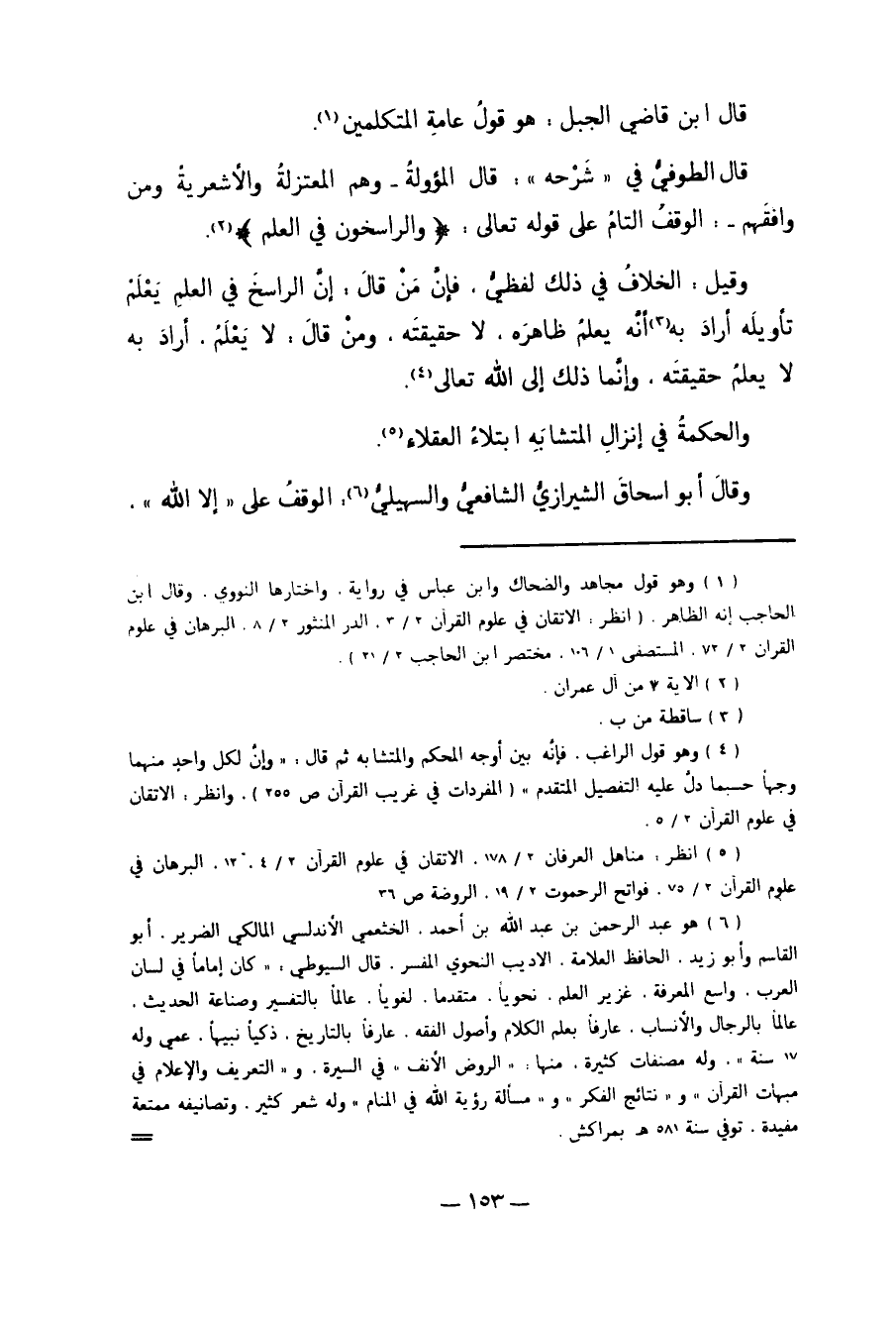 قَالَ ابْنُ قَاضِي الْجَبَلِ: هُوَ قَوْلُ عَامَّةِ الْمُتَكَلِّمِينَ1. قَالَ الطُّوفِيُّ فِي "شَرْحِهِ"، قَالَ الْمُؤَوِّلَةُ - وَهُمْ الْمُعْتَزِلَةُ وَالأَشْعَرِيَّةُ وَمَنْ وَافَقَهُمْ - الْوَقْفُ التَّامُّ عَلَى قَوْله تَعَالَى: {وَالرَّاسِخُونَ فِي الْعِلْمِ} 2.