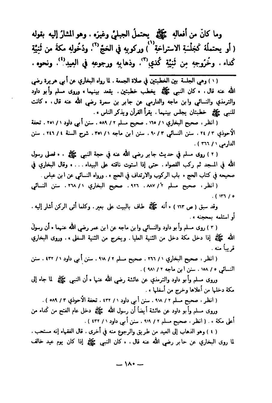 وَمَا كَانَ مِنْ أَفْعَالِهِ صلى الله عليه وسلم يَحْتَمِلُ الْجِبِلِّيَّ وَغَيْرَهُ، وَهُوَ الْمُشَارُ إلَيْهِ بِقَوْلِهِ: "أَوْ يَحْتَمِلُهُ كَجِلْسَةِ الاسْتِرَاحَةِ1" وَرُكُوبِهِ فِي الْحَجِّ2 وَدُخُولِهِ مَكَّةَ مِنْ ثَنِيَّةِ كَدَاءٍ، وَخُرُوجِهِ مِنْ ثَنِيَّةِ كُدَي3، وَذَهَابِهِ وَرُجُوعِهِ فِي الْعِيدِ4 وَنَحْوِهِ