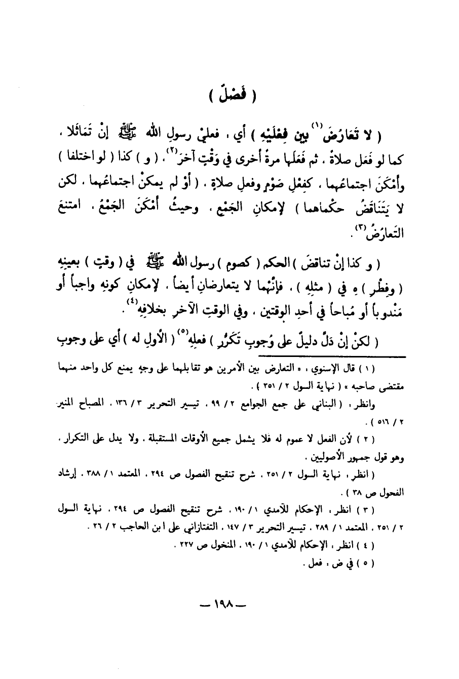 فَصْلٌ: "لا تَعَارُضَ 1 بَيْنَ فِعْلَيْه"ِ