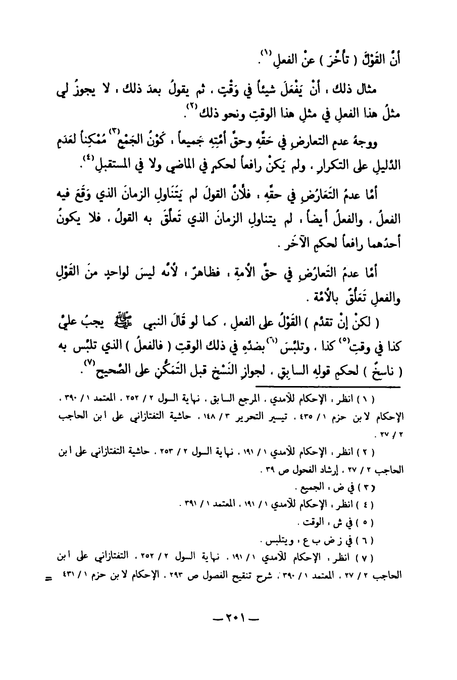 أَنَّ الْقَوْلَ "تَأَخَّرَ" عَنْ الْفِعْلِ1.