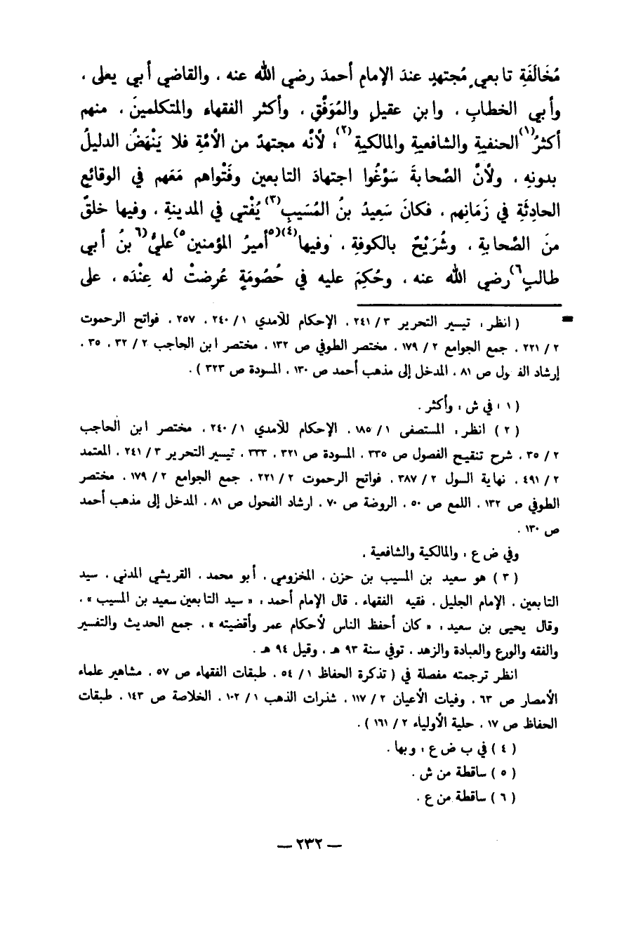 مُخَالَفَةِ تَابِعِيٍّ مُجْتَهِدٍ عِنْدَ الإِمَامِ أَحْمَدَ رَضِيَ اللَّهُ عَنْهُ وَالْقَاضِي أَبِي يَعْلَى، وَأَبِي الْخَطَّابِ، وَابْنِ عَقِيلٍ وَالْمُوَفَّقِ، وَأَكْثَرِ الْفُقَهَاءِ وَالْمُتَكَلِّمِينَ مِنْهُمْ، أَكْثَرُ1 الْحَنَفِيَّةِ وَالشَّافِعِيَّةِ وَالْمَالِكِيَّةِ2. لأَنَّهُ مُجْتَهِدٌ مِنْ الأُمَّةِ. فَلا يَنْهَضُ الدَّلِيلُ بِدُونِهِ، وَلأَنَّ الصَّحَابَةَ سَوَّغُوا اجْتِهَادَ التَّابِعِينَ وَفَتْوَاهُمْ مَعَهُمْ فِي الْوَقَائِعِ الْحَادِثَةِ فِي زَمَانِهِمْ، فَكَانَ سَعِيدُ بْنُ الْمُسَيِّبِ3 يُفْتِي فِي الْمَدِينَةِ وَفِيهَا خَلْقٌ مِنْ الصَّحَابَةِ، وَشُرَيْحٌ بِالْكُوفَةِ وَفِيهَا45أَمِيرُ الْمُؤْمِنِينَ5 عَلِيُّ6بْنُ أَبِي طَالِبٍ7 رَضِيَ اللَّهُ عَنْهُ، وَحَكَمَ عَلَيْهِ فِي خُصُومَةٍ عَرَضَتْ لَهُ عِنْدَهُ، عَلَى