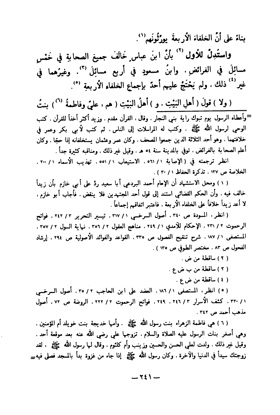 بِنَاءً عَلَى أَنَّ الْخُلَفَاءَ الأَرْبَعَةَ يُوَرِّثُونَهُمْ1.