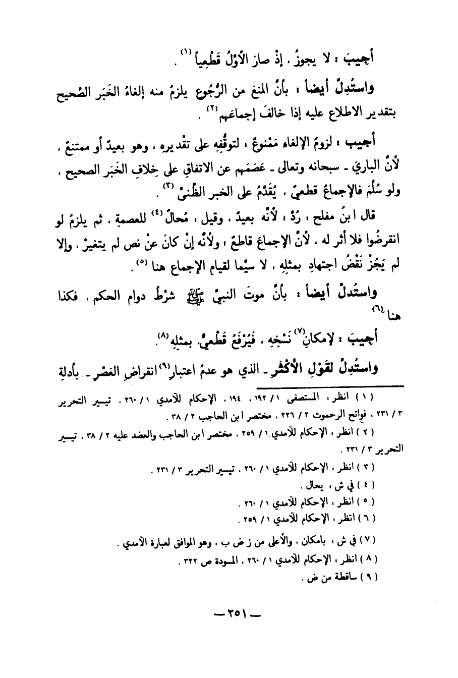 أُجِيبَ: لإِمْكَانِ7 نَسْخِهِ. فَيُرْفَعُ قَطْعِيٌّ بِمِثْلِهِ8.