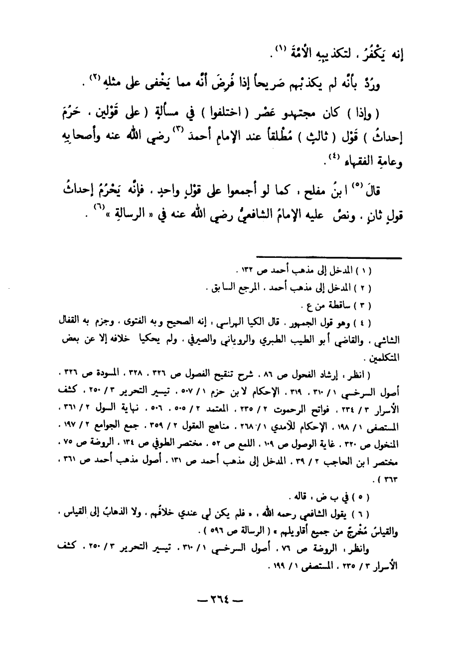 "وَإِذَا" كَانَ مُجْتَهِدُو عَصْرٍ "اخْتَلَفُوا" فِي مَسْأَلَةٍ "عَلَى قَوْلَيْنِ حَرُمَ إحْدَاثُ" قَوْلٍ "ثَالِثٍ" مُطْلَقًا عِنْدَ الإِمَامِ أَحْمَدَ3 رَضِيَ اللَّهُ عَنْهُ وَأَصْحَابِهِ وَعَامَّةِ الْفُقَهَاءِ4.