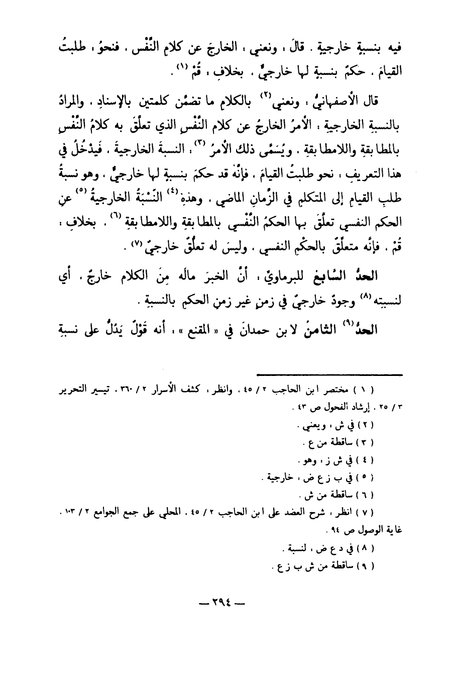 الْحَدُّ9 الثَّامِنُ لابْنِ حَمْدَانَ فِي "الْمُقْنِعِ": أَنَّهُ قَوْلٌ يَدُلُّ عَلَى نِسْبَةِ