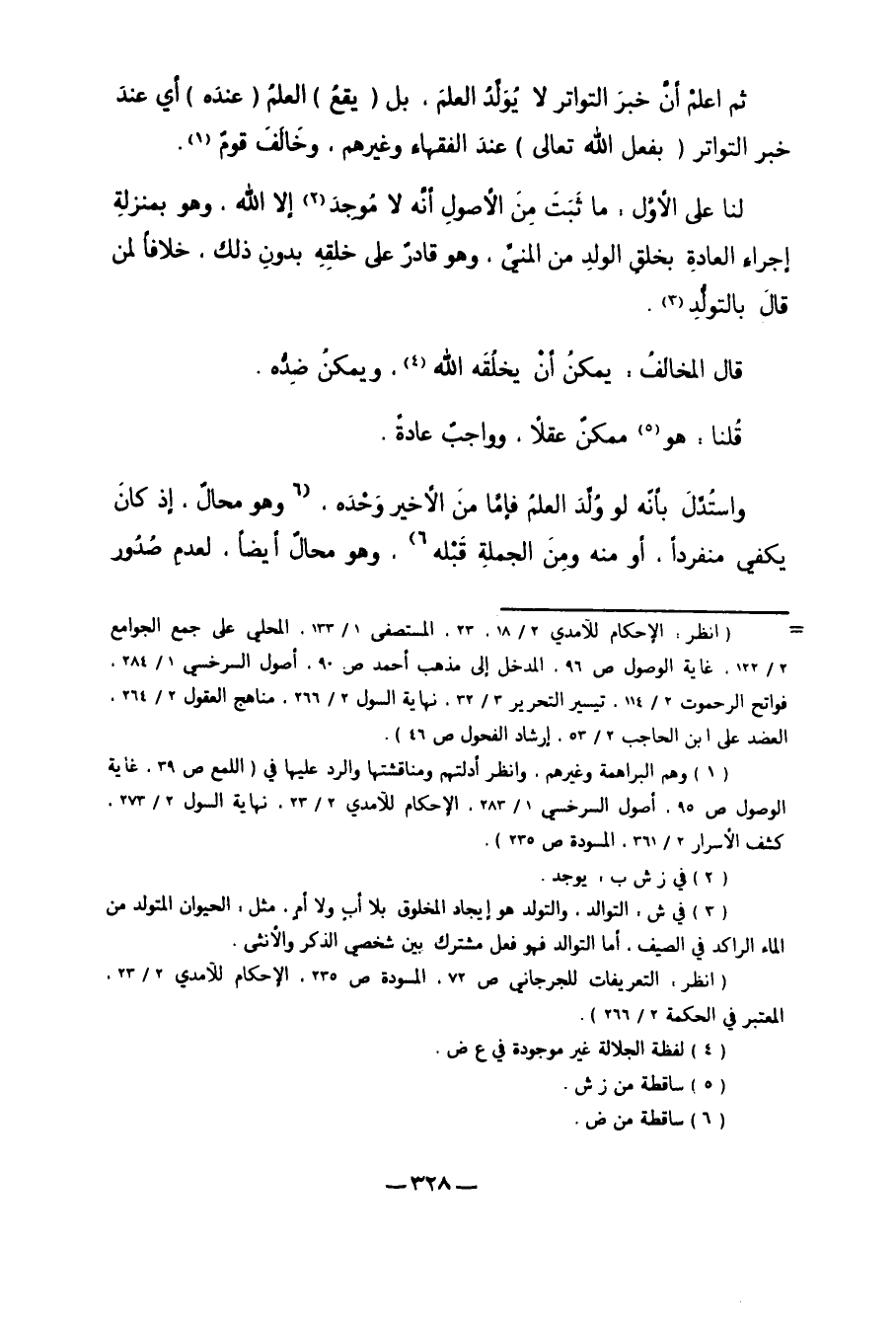 ثُمَّ اعْلَمْ أَنَّ خَبَرَ التَّوَاتُرِ لا يُوَلِّدُ الْعِلْمَ، بَلْ "يَقَعُ" الْعِلْمُ "عِنْدَهُ" أَيْ عِنْدَ خَبَرِ التَّوَاتُرِ "بِفِعْلِ اللَّهِ تَعَالَى" عِنْدَ الْفُقَهَاءِ وَغَيْرِهِمْ، وَخَالَفَ قَوْمٌ1.