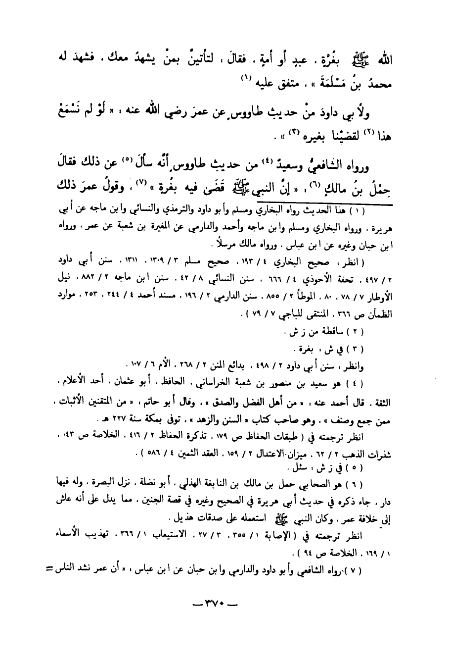 اللَّهِ صَلَّى اللَّهُ عَلَيْهِ وَسَلَّمَ بِغُرَّةِ عَبْدٍ أَوْ أَمَةٍ. فَقَالَ: لَتَأْتِيَنَّ بِمَنْ يَشْهَدُ مَعَك. فَشَهِدَ لَهُ مُحَمَّدُ بْنُ مَسْلَمَةَ" مُتَّفَقٌ عَلَيْهِ1.