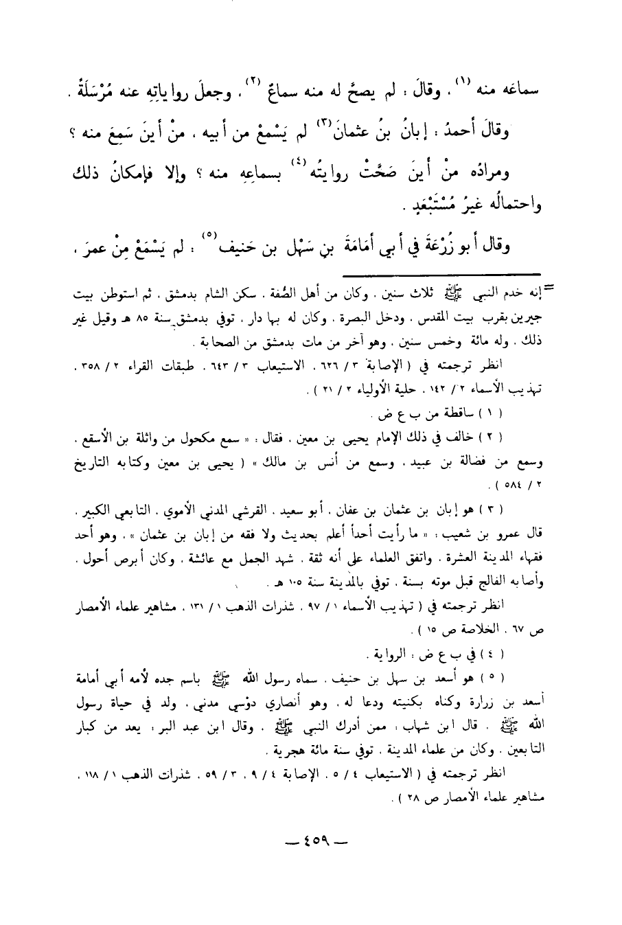 3 هو أبان بن عثمان بن عفان، أبو سعيد القرشي، المدني الأموي، التابعي الكبير. قال عمرو بن شعيب: "ما رأيت أحداً أعلم بحديث ولا فقه من أبان بن عثمان". وهو أحد فقهاء المدينة العشرة. واتفق العلماء على أنه ثقة. شهد الجمل مع عائشة، وكان أبرص أحول، وأصابه الفالج قبل موته بسنة. توفي بالمدينة سنة 105 هـ.
