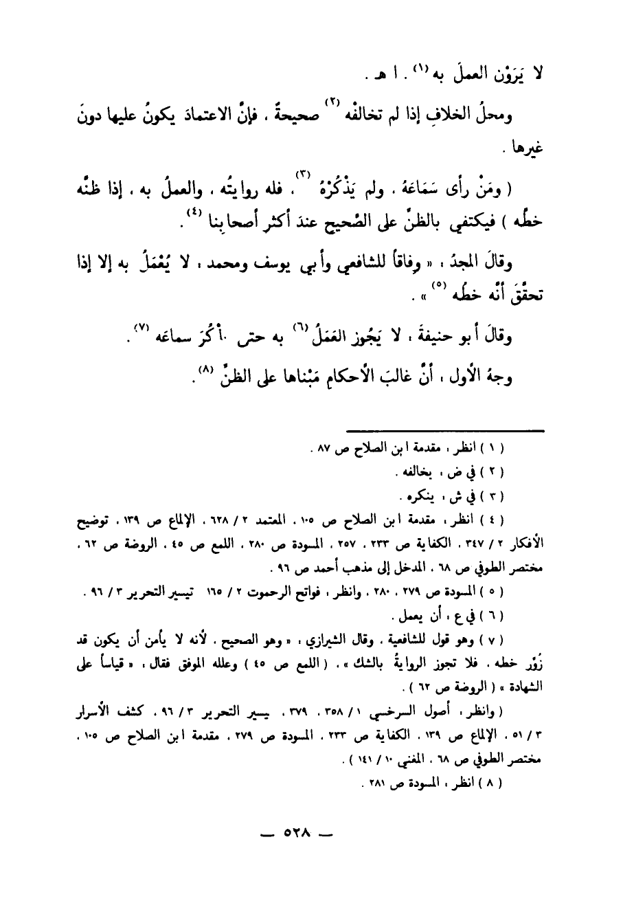 4 انظر: مقدمة ابن الصلاح ص 105، المعتمد 2/ 628، الإلماع ص 139، توضيح الأفكار 2/ 347، الكفاية ص 233، 257، المسودة ص 280، اللمع ص 45، الروضة ص 62، مختصر الطوفي ص 68، المدخل إلى مذهب أحمد ص 96.