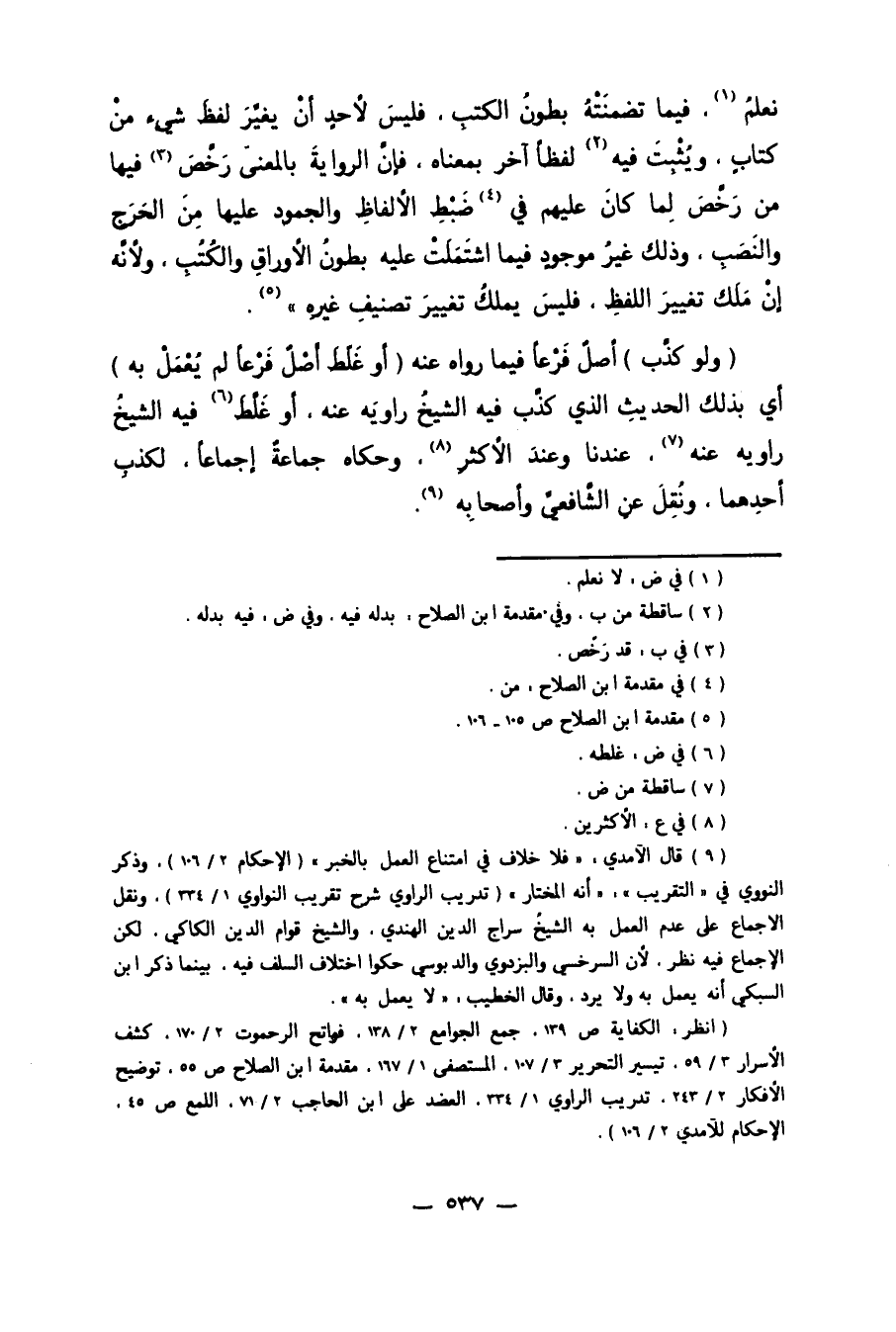 نَعْلَمُ1 فِيمَا تَضَمَّنَتْهُ بُطُونُ الْكُتُبِ فَلَيْسَ لأَحَدٍ أَنْ يُغَيِّرَ لَفْظَ شَيْءٍ مِنْ كِتَابٍ، وَيُثْبِتَ فِيهِ2 لَفْظًا آخَرَ بِمَعْنَاهُ. فَإِنَّ الرِّوَايَةَ بِالْمَعْنَى رَخَّصَ3 فِيهَا مَنْ رَخَّصَ لِمَا كَانَ عَلَيْهِمْ فِي4 ضَبْطِ الأَلْفَاظِ وَالْجُمُودِ عَلَيْهَا مِنْ الْحَرَجِ وَالنَّصَبِ. وَذَلِكَ غَيْرُ مَوْجُودٍ فِيمَا اشْتَمَلَتْ عَلَيْهِ بُطُونُ الأَوْرَاقِ وَالْكُتُبِ، وَلأَنَّهُ إنْ مَلَكَ تَغْيِيرَ اللَّفْظِ فَلَيْسَ يَمْلِكُ تَغْيِيرَ تَصْنِيفِ غَيْرِهِ5".