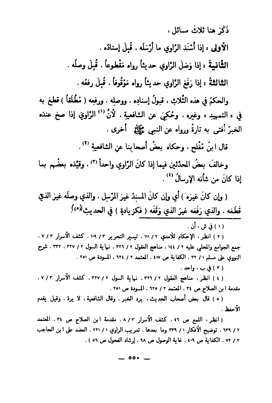 4 انظر: مناهج العقول 2/ 326، نهاية السول 2/ 327، كشف الأسرار 3/ 7، مقدمة ابن الصلاح ص 34، المعتمد 2/ 625، المسودة ص 251.