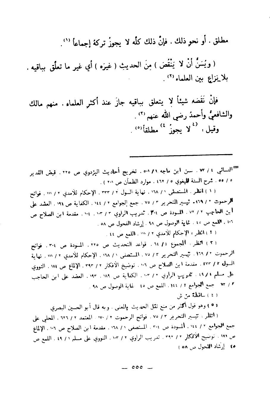 3 انظر: المجموع 1/ 64، قواعد التحديث ص 225، المسودة ص 304، فواتح الرحموت 2/ 169، تيسير التحرير 3/ 75، المستصفى 1/ 168، الإحكام للآمدي 2/ 111، نهاية السول 2/ 333، مقدمة ابن الصلاح ص 106، توضيح الأفكار 2/ 393، الإلماع ص 181، النووي على مسلم 1/ 49، تدريب الراوي 2/ 103، الكفاية ص 189، 193، العضد على ابن الحاجب 2/ 72، جمع الجوامع 2/ 144، اللمع ص 45، غاية الوصول ص 98.