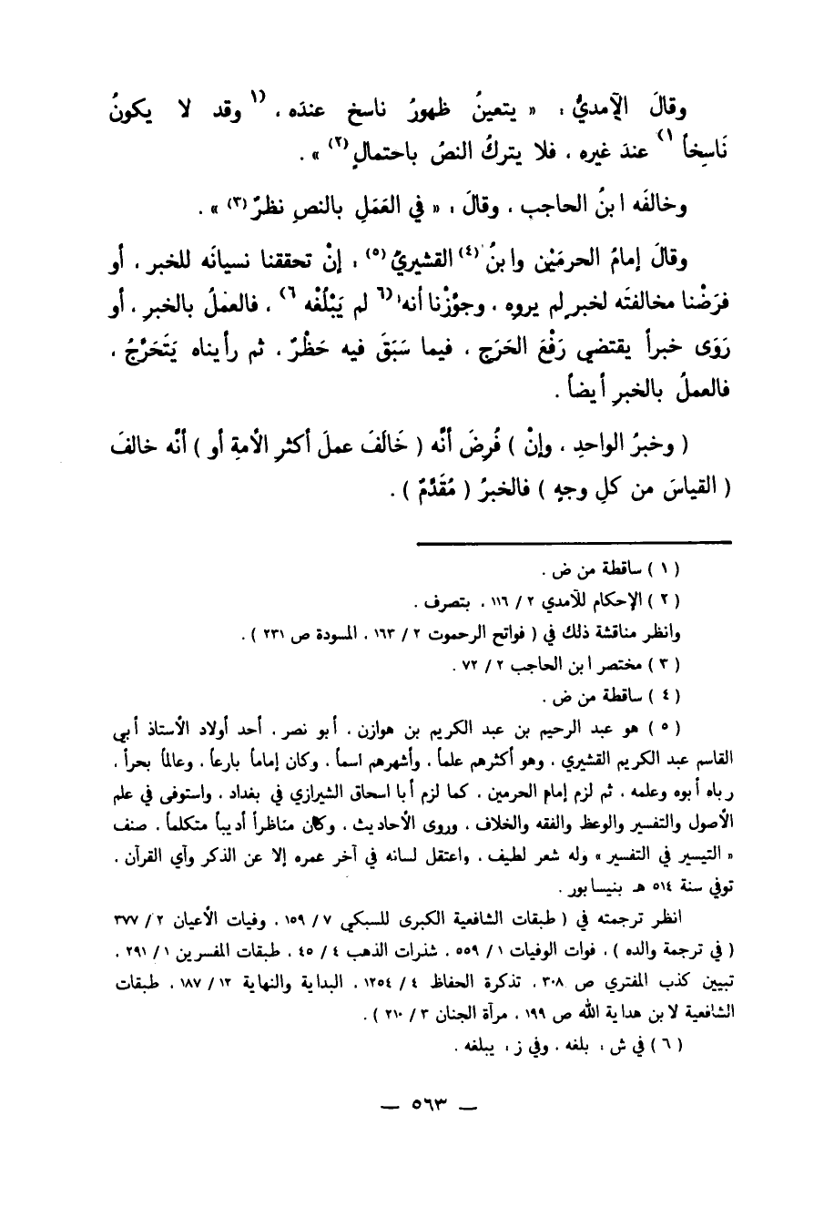5 هو عبد الرحيم بن عبد الكريم بن هوازن، أبو نصر، أحد أولاد الأستاذ أبي القاسم عبد الكريم القشيري، وهو أكثرهم علماً، وأشهرهم اسماً، وكان إماماً بارعاً، وعالماً بحراً، رباه أبوه وعلمه، ثم لزم إمام الحرمين، كما لزم أبا إسحاق الشيرازي في بغداد، واستوفى في علم الأصول والتفسير والوعظ والفقه والخلاف، وروى الأحاديث، وكان مناظراً أديباً متكلماً. صنف "التيسير في التفسير" وله شعر لطيف. واعتقل لسانه في آخر عمره إلا عن الذمر وآي القرآن. توفي سنة 514 هـ بنيسابور.
