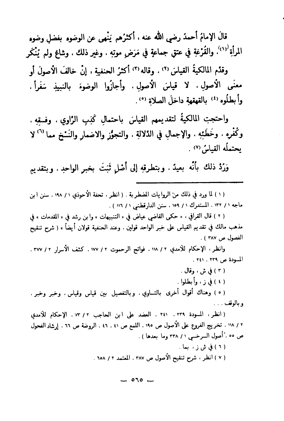 2 قال القرافي: "حكى القاضي عياض في "التنبيهات" وابن رشد في "المقدمات" في مذهب مالك في تقديم القياس على خبر الواحد قولين، وعند الحنفية قولان أيضاً" "شرح تنقيح الفصول ص 387".