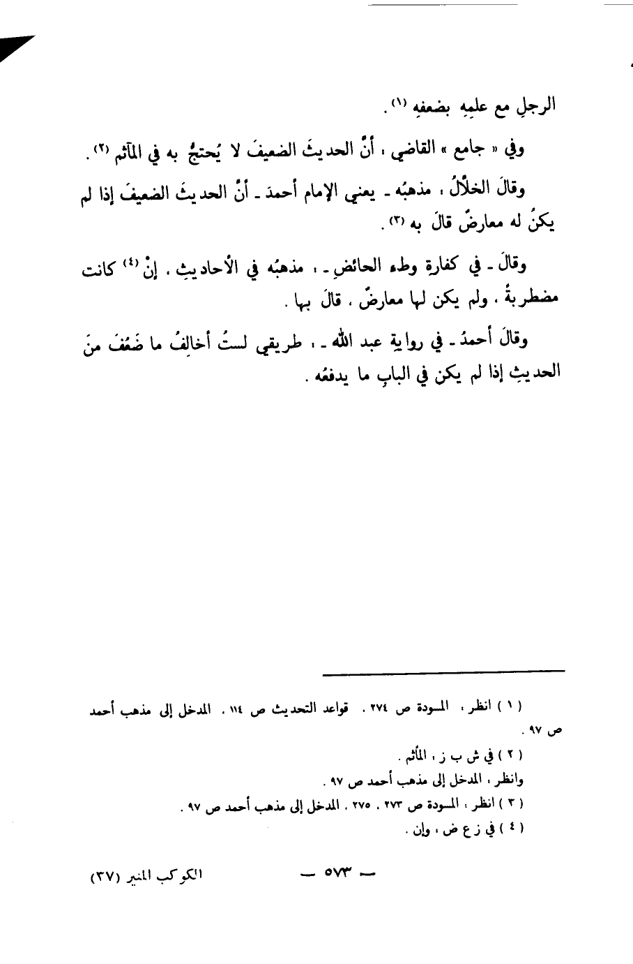 1 انظر: المسودة ص 274، قواعد التحديث ص 114، المدخل إلى مذهب أحمد ص 97.