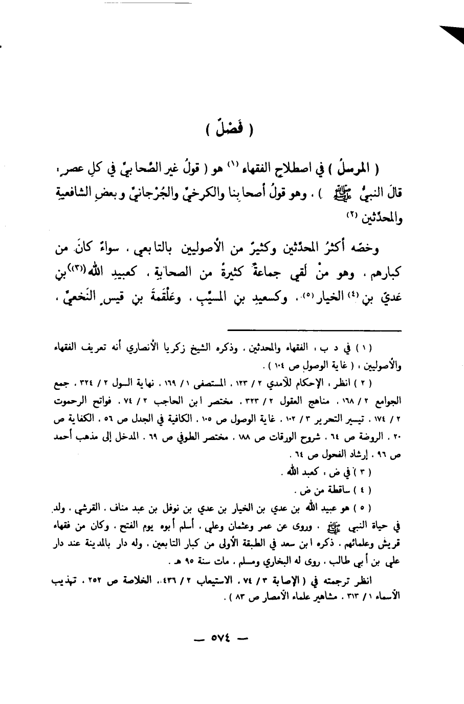 وَخَصَّهُ أَكْثَرُ الْمُحَدِّثِينَ وَكَثِيرٌ مِنْ الأُصُولِيِّينَ بِالتَّابِعِيِّ، سَوَاءٌ كَانَ مِنْ كِبَارِهِمْ، وَهُوَ مَنْ لَقِيَ جَمَاعَةً كَثِيرَةً مِنْ الصَّحَابَةِ، كَعُبَيْدِ اللَّهِ3 بْنِ عَدِيِّ بْنِ4 الْخِيَارِ5 وَكَسَعِيدِ بْنِ الْمُسَيِّبِ، وَعَلْقَمَةَ بْنِ قَيْسٍ النَّخَعِيِّ،