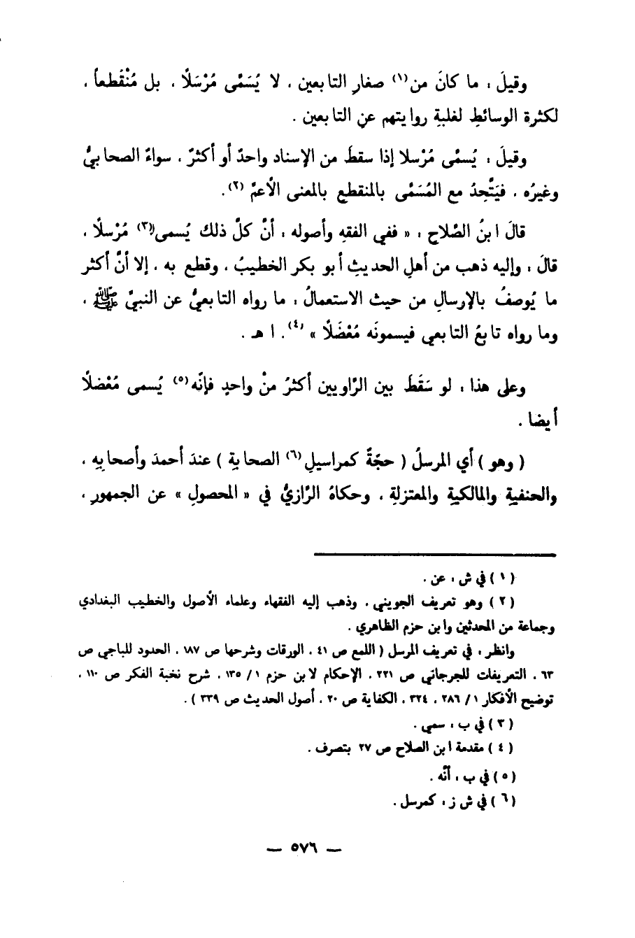 وانظر في تعريف المرسل "اللمع ص 41، الورقات وشرحها ص 187، الحدود للباجي ص 63، التعريفات للجرجاني ص 221، الإحكام لابن حزم 1/ 135، شرح نخبة الفكر ص 110، توضيح الأفكار 1/ 286، 324، الكفاية ص 20، أصول الحديث ص 339".
