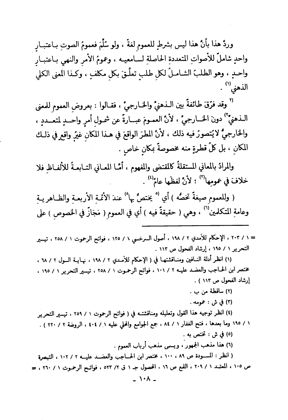 6 هذا مذهب الجمهور، مذهب الجمهور، ويسمى مذهب أرباب العموم.