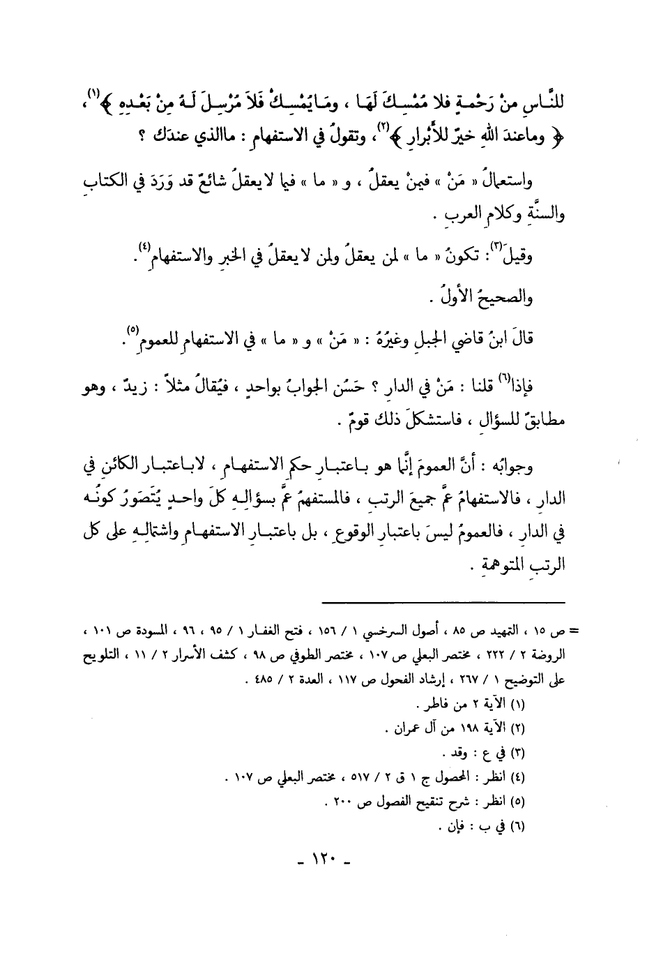 قَالَ ابْنُ قَاضِي الْجَبَلِ وَغَيْرُهُ "مَنْ، وَمَا" فِي الاسْتِفْهَامِ لِلْعُمُومِ5.