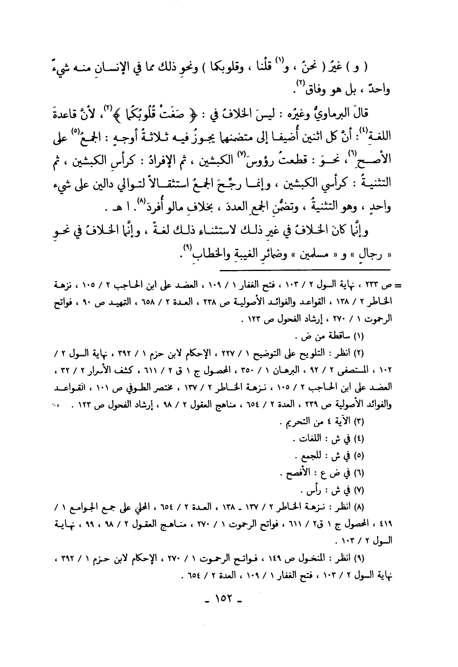 وَإِنَّمَا كَانَ الْخِلافُ فِي غَيْرِ ذَلِكَ لاسْتِثْنَاءِ ذَلِكَ لُغَةً. وَإِنَّمَا الْخِلافُ فِي نَحْوِ "رِجَالٌ وَمُسْلِمِينَ "وَضَمَائِرُ الْغَيْبَةِ وَالْخِطَابِ9.