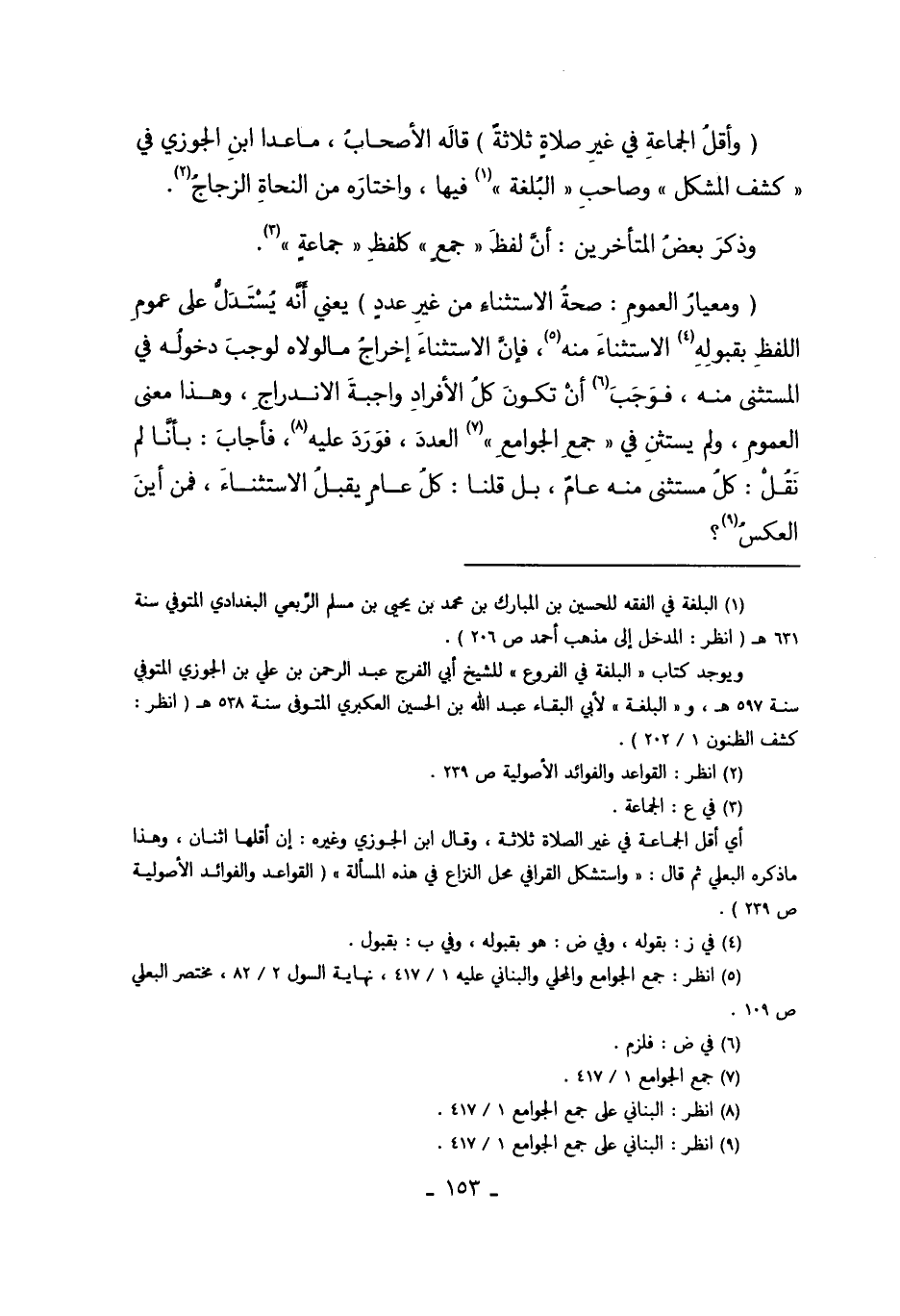 5 انظر: جمع الجوامع والمحلي والبناني عليه 1/417، نهاية السول 2/82، مختصر البعلي ص109.