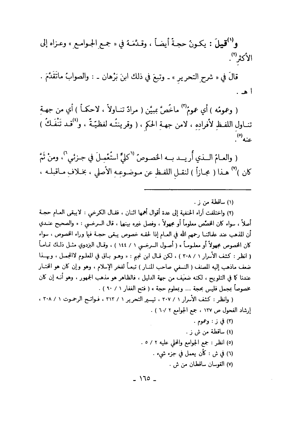 "وانظر: كشف الأسرار 1/307، تيسير التحرير 1/313، فواتح الرحموت 1/308، إرشاد الفحول ص137، جمع الجوامع 2/6".