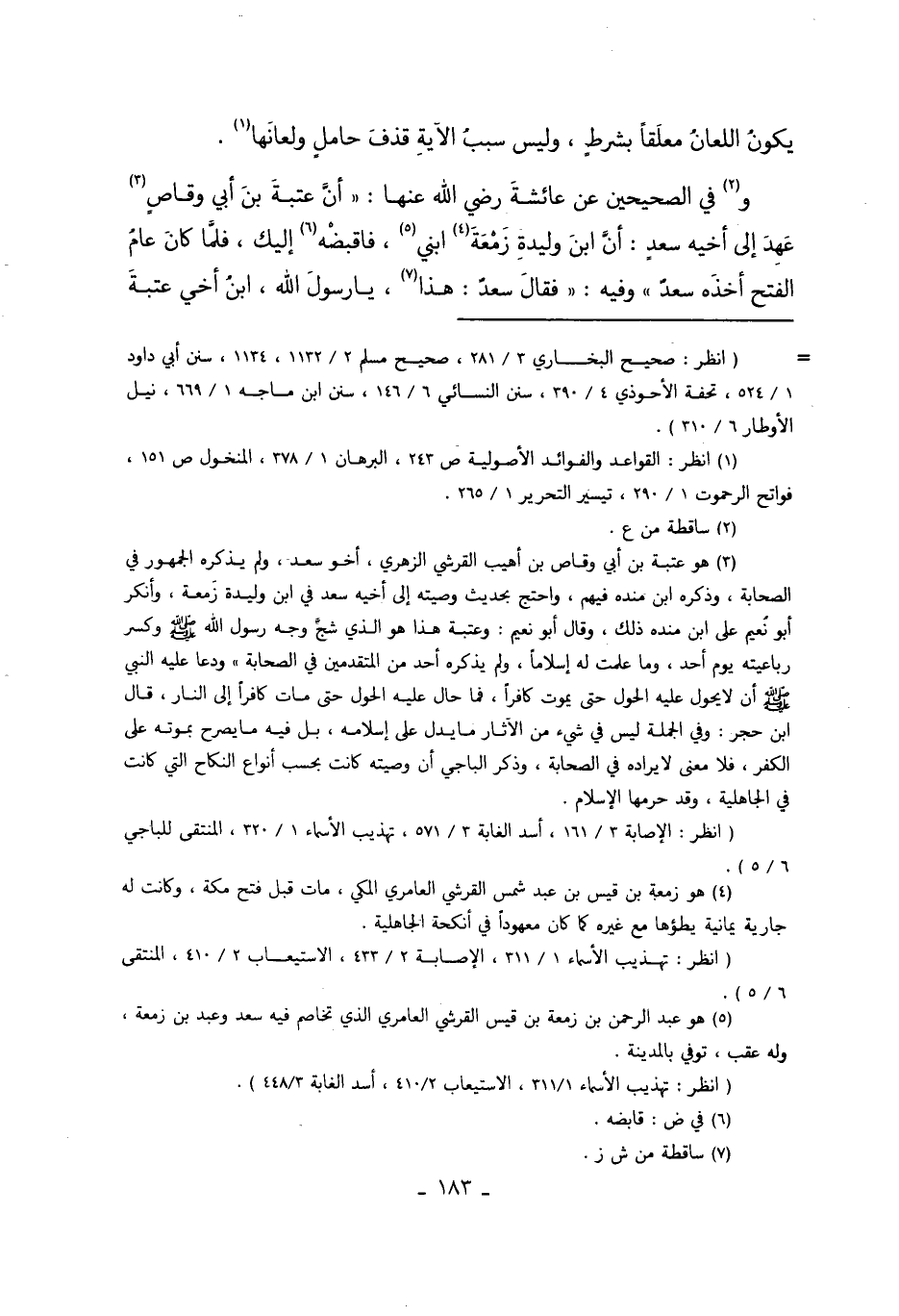 3 هو عتبة بن أبي وقاص بن أهيب القرشي الزهري، أخو سعد، ولم يذكره الجمهور في الصحابة، وذكره ابن منده فيهم، واحتج بحديث وصيته إلى أخيه سعد في ابن وليدة زمعة، وأنكر أبو نعيم على ابن منده ذلك، وقال أبو نعيم: وعتبة هذا هو الذي شج وجه رسول الله صلى الله عليه وسلم وكسر رباعيته بوم أحد، وما علمت له إسلاماً، ولم بذكره أحد من المتقدمين في الصحابة" ودعا عليه النبي صلى الله عليه وسلم أن لا يحول عليه الحول حتى يموت كافراً، فما حال عليه الحول حتى مات كافراً إلى النار، قال ابن حجر: فلا معنى لا يراده في الصحابة، وذكر الباجي أن وصيته كانت بحسب أنواع النكاح التي كانت في الجاهلية، وقد حرمها الإسلام.