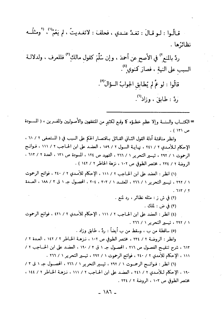 6 انظر: فواتح الرحموت 1/292، تيسير التحرير 1/266، المحصول ج1 ق3/190، الإحكام للآمدي 2/241، العضد على ابن الحاجب 2/111، نزهة الخاطر 2/144، مختصر الطوفي ص103، الروضة 2/224.