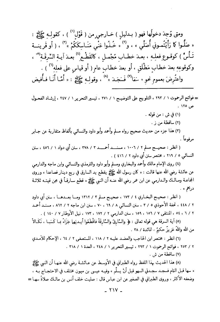 وَمَتَى وُجِدَ دُخُولُهَا فَهُوَ "بِدَلِيلٍ" خَارِجِيٍّ مِنْ "قَوْلٍ1" كَقَوْلِهِ صَلَّى اللَّهُ عَلَيْهِ وَسَلَّمَ "صَلُّوا كَمَا رَأَيْتُمُونِي أُصَلِّي" وَ2 "خُذُوا عَنِّي مَنَاسِكَكُمْ" 3 "أَوْ قَرِينَةِ تَأَسٍّ" كَوُقُوعِ فِعْلِهِ بَعْدَ خِطَابٍ مُجْمَلٍ، كَالْقَطْعِ4 بَعْدَ آيَةِ السَّرِقَةِ5، وَكَوُقُوعِهِ بَعْدَ خِطَابٍ مُطْلَقٍ، أَوْ بَعْدَ خِطَابٍ عَامٍّ "أَوْ قِيَاسٍ عَلَى فِعْلِهِ6".
