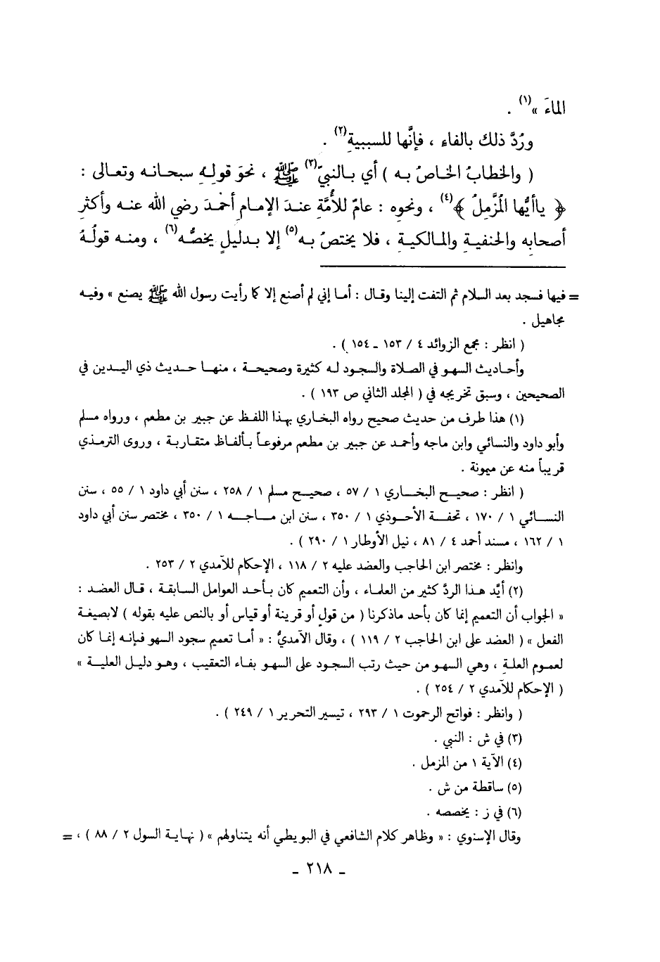 "وانظر: الإحكام للآمدي 2/260، البرهان 1/367، المحصول ج1 ق2/620، مختصر ابن الحاجب 2/121، المحلي على جمع الجوامع 1/427، فواتح الرحموت 1/281، تيسير التحرير 1/251، مختصر الطوفي ص91، إرشاد الفحول ص129، مختصر البعلي ص114، العدة 1/318".