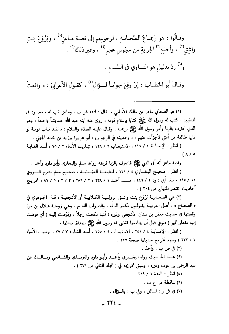 "انظر: صحيح البخاري 4/121، المطبعة العثمانية، صحيح مسلم بشرح النووي 11/195، سنن أبي داود 2/446، مسند احمد 1/238، 2/286، 3/2، 5/89، تخريج أحاديث مختصر المنهاج ص304".