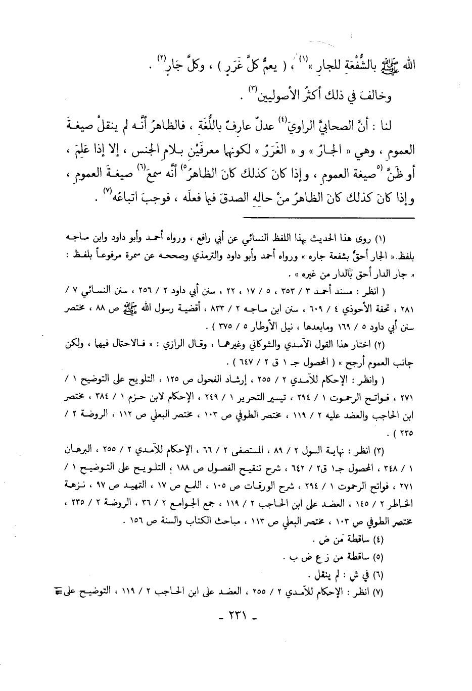 7 انظر: الإحكام للآمدي 2/255، العضد على ابن الحاجب 2/119، التوضيح على التنقيح 1/271، فواتح الرحموت 1/294، تيسير التحرير 1/249، إرشاد الفحول ص125، الروضة 2/235، مختصر الطوفي ص103.