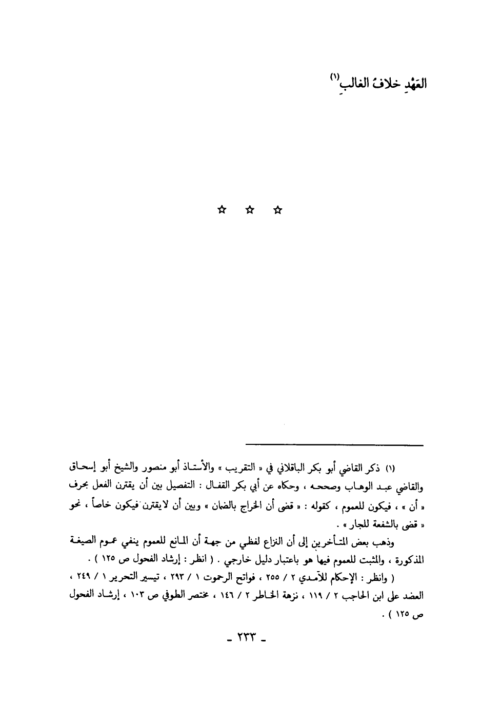 1 ذكر القاضي أبو بكر الباقلاني في "التقريب" والأستاذ أبو منصور والشيخ أبو إسحاق والقاضي عبد الوهاب وصححه، وحكاه عن أبي القفال: التفصيل بين أن يقترن الفعل بحرف "أن"، فيكون للعموم، كقوله: "قضى أن الخراج بالضمان" وبين لا يقترن فيكون خاصاً، نحو "قضى بالشفعة للجار".