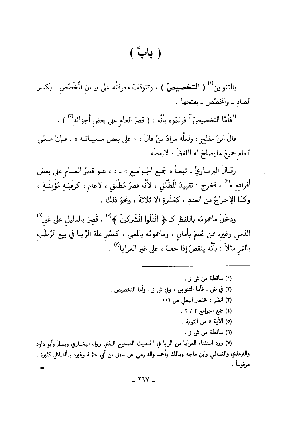 بِالتَّنْوِينِ1 "التَّخْصِيصُ" وَتَتَوَقَّفُ مَعْرِفَتُهُ عَلَى بَيَانِ الْمُخَصِّصِ -بِكَسْرِ الصَّادِ- وَالْمُخَصَّصِ - بِفَتْحِهَا.