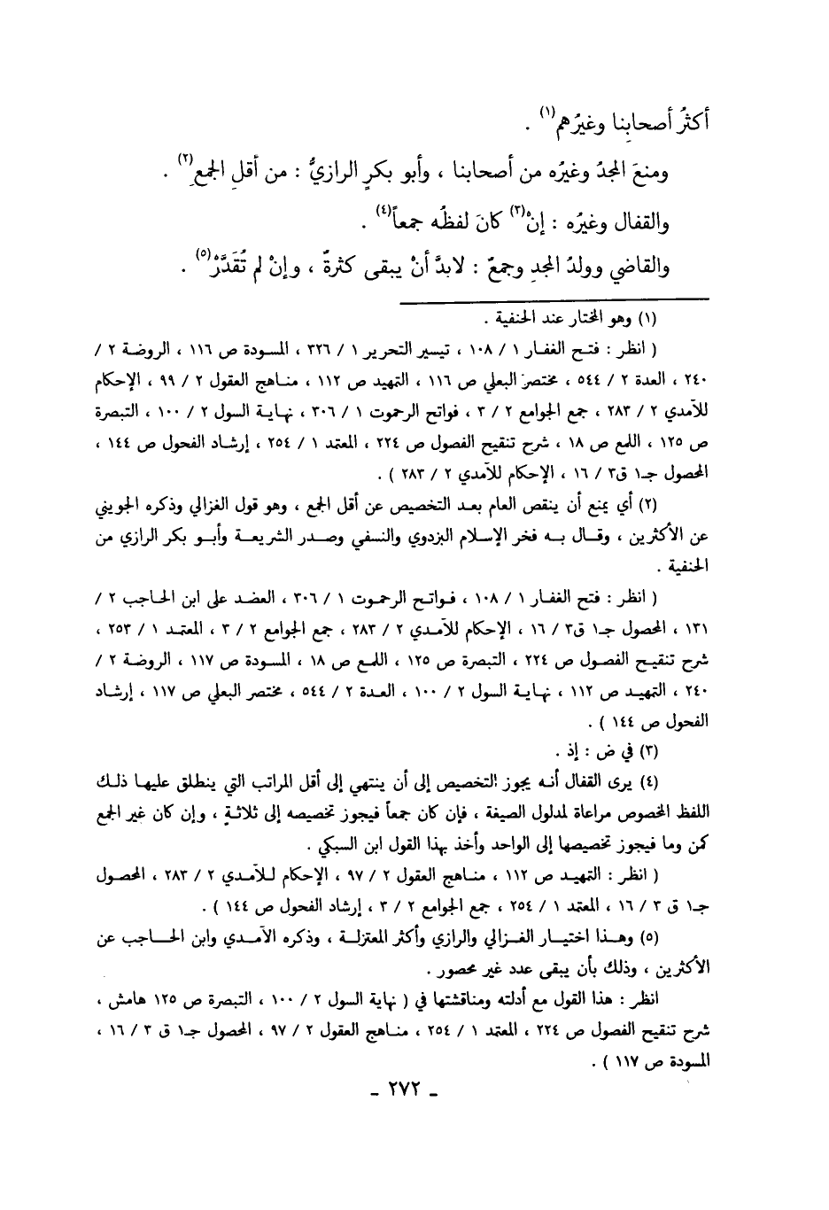 2 أي يمنع أن ينقص العام بعد التخصيص عن أقل الجمع، وهو قول الغزالي وذكره الجويني عن الأكثرين، وقال به فخر الإسلام البردوي والنسفي وصدر الشريعة وأبو بكر الرازي من الحنفية.