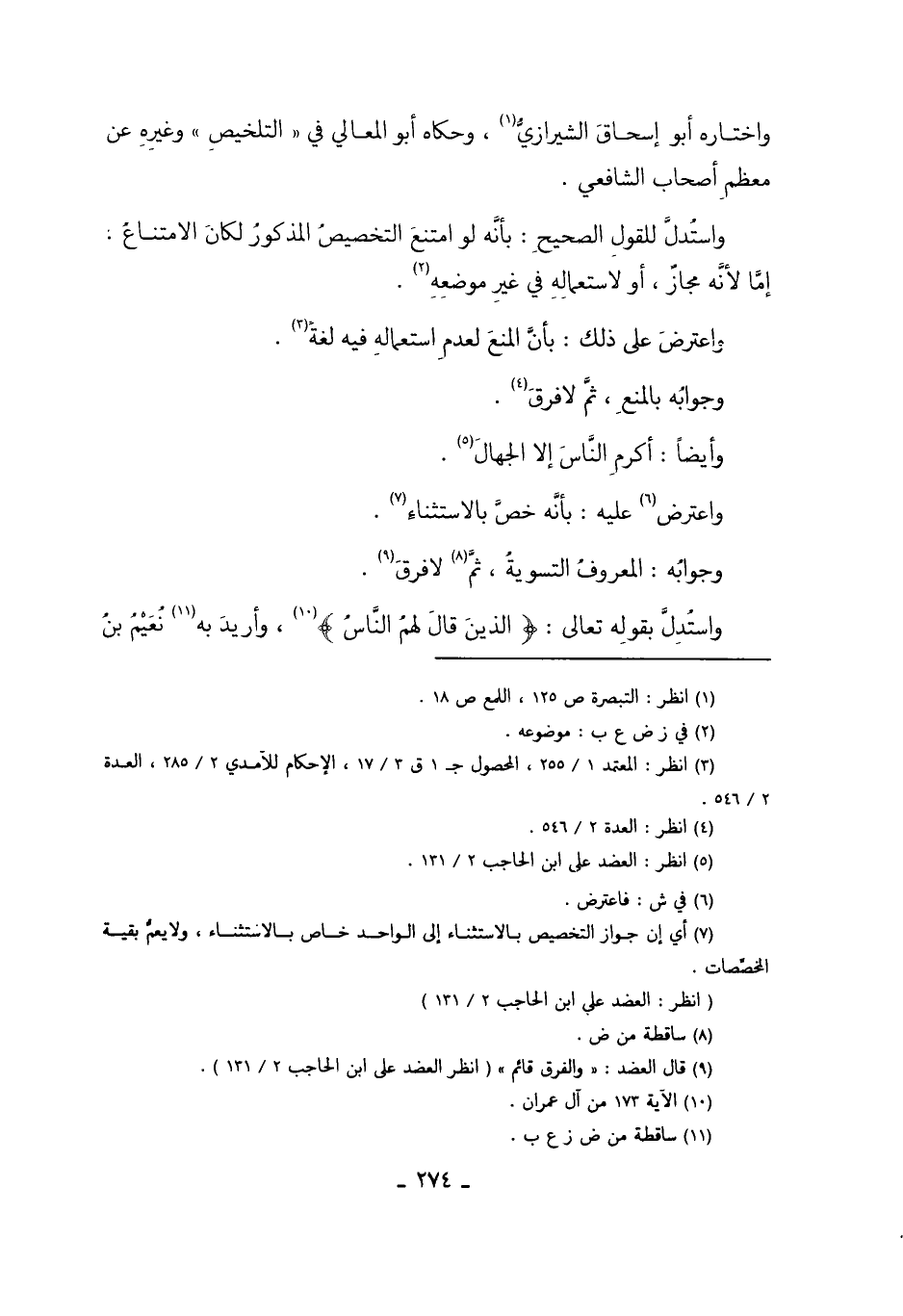 وَاعْتُرِضَ6 عَلَيْهِ بِأَنَّهُ خَصَّ بِالاسْتِثْنَاءِ7.