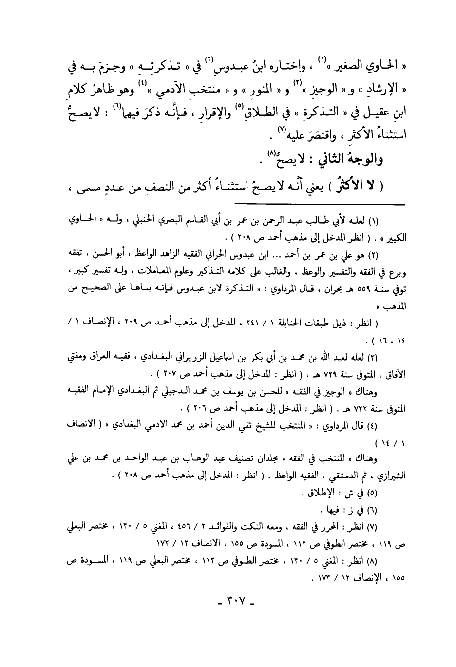 2 هو علي بن عمر بن أحمد ... ابن عبدوس الحراني الفقيه الزاهد الواعظ، أبو الحسن، تفقه وبرع في الفقه والتفسير والوعظ، والغالب على كلامه التذكير وعلوم المعاملات، وله تفسير كبير، توفي سنة 559هـ بحران، قال المرداوي: "التذكرة لابن عبدوس فإنه بناها على الصحيح من المذهب".