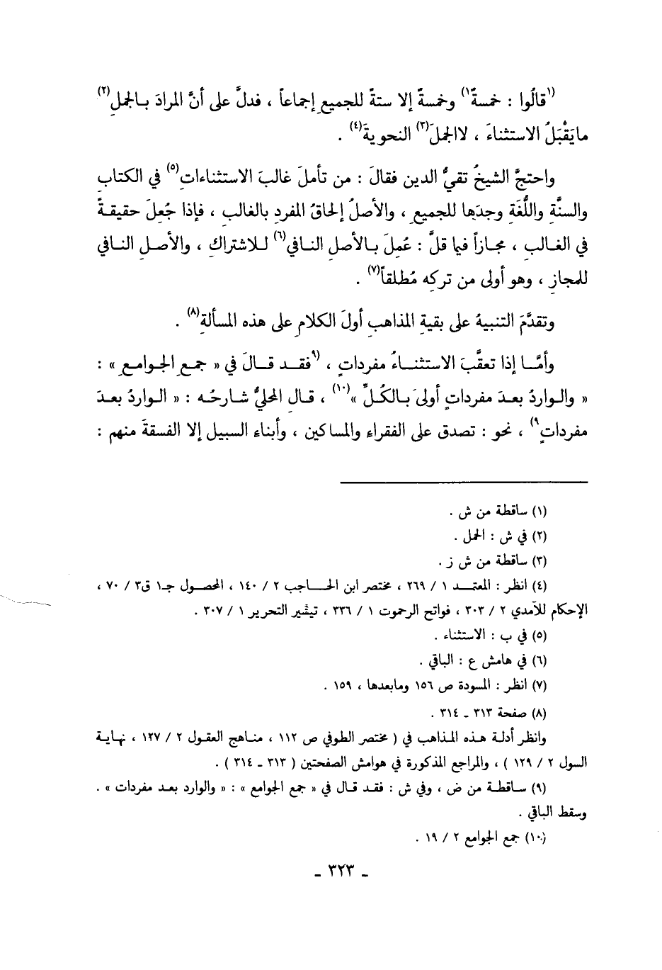 9 وانظر أدلة هذه المذاهب في "مختصر الطوفي ص112، مناهج العقول 2/172، نهاية السول 2/129"، والمراجع المذكورة فغي هوامش الصفحتين "313-314".