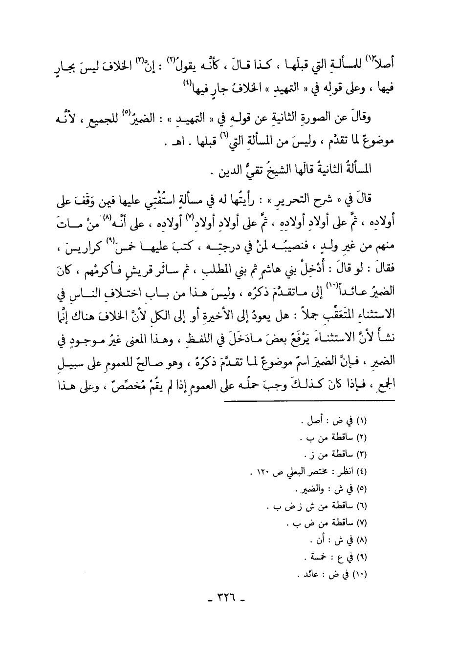وَقَالَ عَنْ الصُّورَةِ الثَّانِيَةِ عَنْ قَوْلِهِ فِي التَّمْهِيدِ: الضَّمِيرُ5 لِلْجَمِيعِ، لأَنَّهُ مَوْضُوعٌ لِمَا تَقَدَّمَ. وَلَيْسَ مِنْ الْمَسْأَلَةِ الَّتِي6 قَبْلَهَا انْتَهَى.