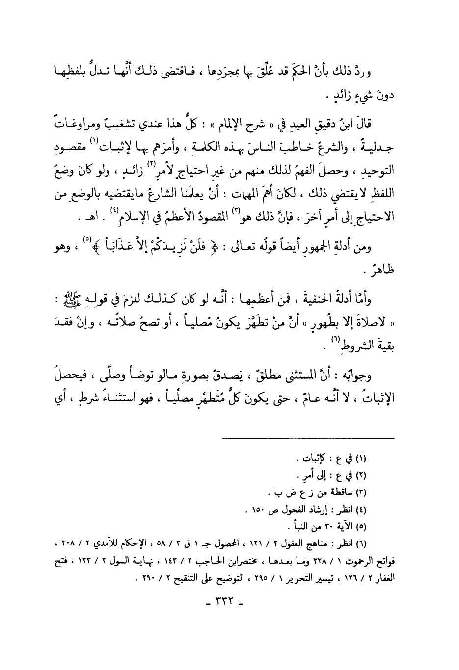 6 انظر: مناهج العقول 2/121، المحصول جـ1 ق3/58، الإحكام للآمدي 2/308، فواتح الرحموت 1/328، ومابعدها، مختصر ابن الحاجب 2/143، نهاية السول 2/123، فتح الغفار 2/126، تيسير التحرير 1/295، التوضيح على التنقيح 2/290.